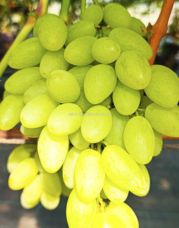 Виноград Джавелин отличается крупными гроздьями и привлекательными желтыми ягодами. Каждая ягода плотная, с мясистой и хрустящей мякотью, без косточек, такой виноград отлично подходит как для свежего потребления, так и для продажи на рынке. Вкус ягоды насыщенный, гармоничный, очень приятный, без излишней кислоты или приторной сладости.